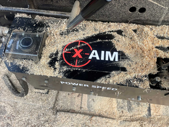 o 5 cm více než předchůdce. Má větší štípací tlak a celkově mu výkon dvou hydraulických čerpadel dodává obrovskou rychlost. Navíc na tomto stroji mám ještě funkci X-aim, kde si stroj hlídá průměr zpracovávaného dřeva a sám tak nastavuje štípací klín na střed špalku.