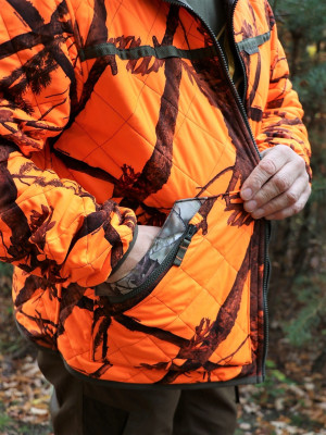 Bunda je velice pohodlná, lehká, pohyb v ní je příjemný. Díky fluorescenční oranžové barvě je uživatel výborně vidět i na velkou vzdálenost, což je jedna z nejdůležitějších podmínek pro dodržování bezpečnosti na společných lovech. Dvojité kapsy jsou dostatečně hluboké, náboje z nich nevypadnou. V těch na zip lze nosit i doklady. V bundě lze absolvovat jak fyzicky náročnější podobu společného lovu v leči, tak lov na stanovišti. V druhém případě je však třeba přihlédnout k charakteru počasí – pokud bude chladno, je třeba počítat ještě s „něčím pod bundu". Testování neprobíhalo za deště, takže se nemůžeme vyjádřit k nepromokavosti, ale lze předpokládat, že vzhledem k charakteru materiálu nebude odolnost v tomto směru příliš vysoká.