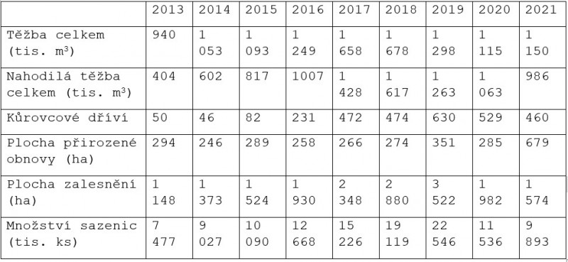 Vybrané ukazatele hospodaření VLS ČR v letech 2013-2021![]()
