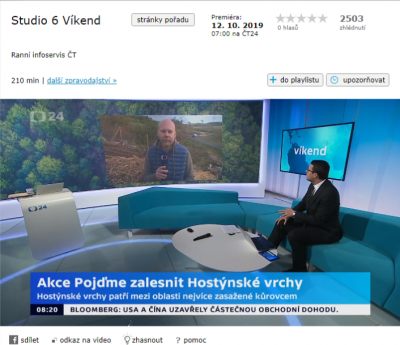 Akci "Pojďme zalesnit Hostýnské vrchy se věnovala i Česká televize v pořadu Studio 6 Víkend. Záznam si můžete pustit zde.