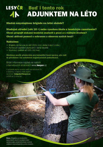 Letní adjunkti najdou uplatnění od června do konce září především v kalamitních oblastech, tedy hlavně na Vysočině a severních Čechách. Pomoc ale uvítají během kůrovcové sezóny i další lesní správy a závody. „Na uvedený email stačí poslat stručný životopis a uvést lokalitu, ve které by chtěl zájemce působit. Vydělá si až 120 korun za hodinu a v případě, že je to student České zemědělské univerzity v Praze nebo brněnského MENDELU, mu školy udělí kredity za praxi,“ dodala Šárka Matějíčková, vedoucí Personálního odboru a ekonomiky práce Lesů ČR.