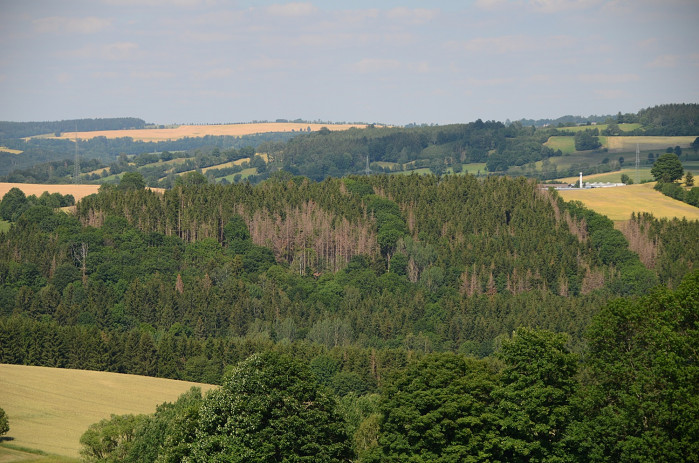Smrkové porosty napadené lýkožroutem v nižších polohách Krušných hor. Foto: Mirko Prüfer