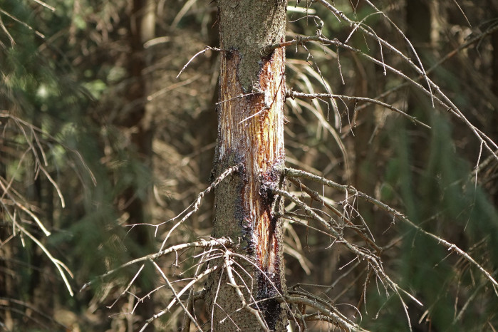 Další generace smrků poškozených loupáním. Populační hustota zvěře a způsob lovu ovlivňují výši škod. Foto: Marcel Thomae