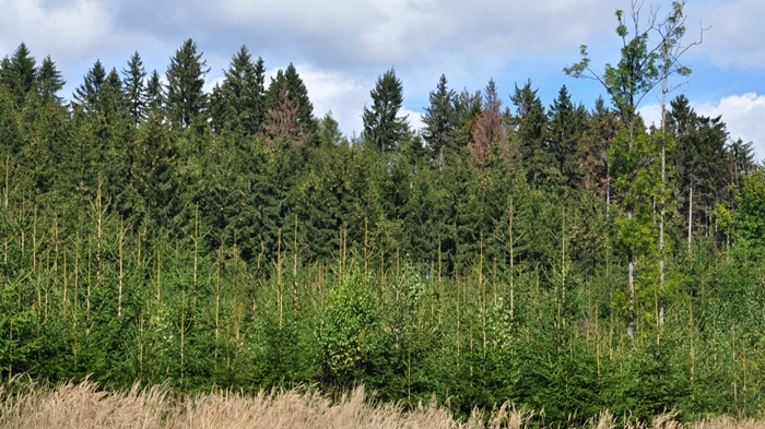 Kůrovci se v počáteční fázi napadení projeví nenápadně několika uschlými stromy. Foto: Jan Řezáč