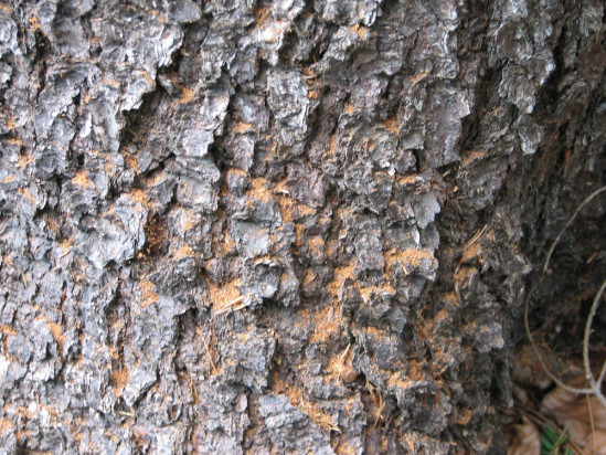Drtinky za šupinami kůry.