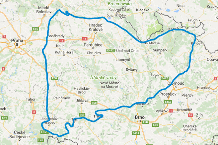 Obr.1: Trasa rekognoskačního letu ze dne 22. 8. 2018.