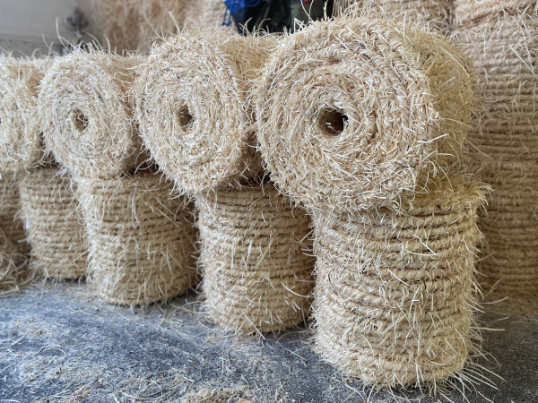 Dřevitá vlna je uložena v hale, kde se z ní na speciálních motacích strojích stáčí dřevěné provazce, nebo se rovnou balí jako konečný produkt k zákazníkovi. Na stáčení provazců se používá hrubá dřevitá vlna. Je to fyzicky náročná práce, proto ji vykonávají pouze muži. „Zapracování na stáčecích strojích trvá kolem tří měsíců, máme k dispozici jeden stroj – trenažér, na kterém si chlapi zaplétání dřevěné vlny ze začátku zkouší, je to o velké manuální zručnosti,“ vysvětluje Marek Švec. I to je jeden z důvodů, proč se snaží zaměstnance udržet a sází na místní zaměstnance. „Mohli bychom samozřejmě zaměstnat za menší peníze i lidi z ciziny, ale ti pak odjedou a museli bychom zaučovat nové. Máme tu i zaměstnance, kteří jsou s firmou téměř po celou dobu jejího fungování.“![]()
