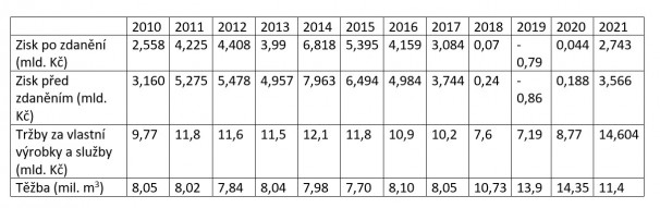 Hospodaření Lesů ČR v letech 2010 až 2021 (Zdroj: Lesy ČR):![]()