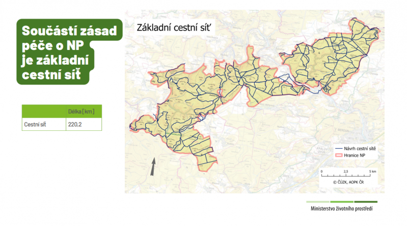 Základní cestní síť v NP Křivoklátsko. Zdroj: MŽP