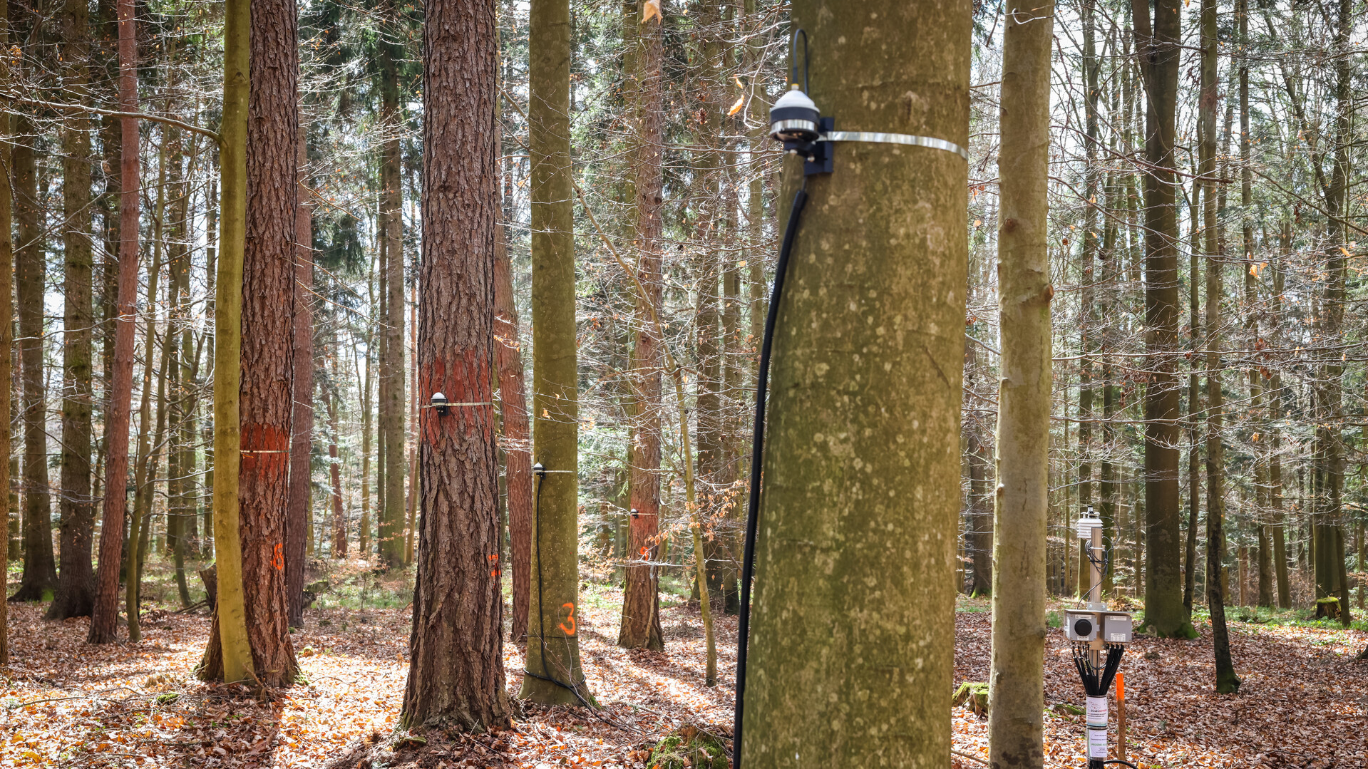 Odborníci LDF MENDELU ve studovaných porostech nainstalovali stanice s modemem pro odesílání dat. „Stanice každých 30 minut monitoruje vlhkost půdy, potenciál půdní vody, teplotu půdy, světelné podmínky pod porostem a teplotu a vlhkost vzduchu. Na stromech jsou připevněné velmi citlivé páskové dendrometry, pomocí kterých studujeme obvodové změny kmene. Takto měříme nejen dynamiku přírůstu kmene, ale také zjistíme, zda konkrétní stromy v porostu netrpí například suchem,“ popsal sledované parametry výzkumník.