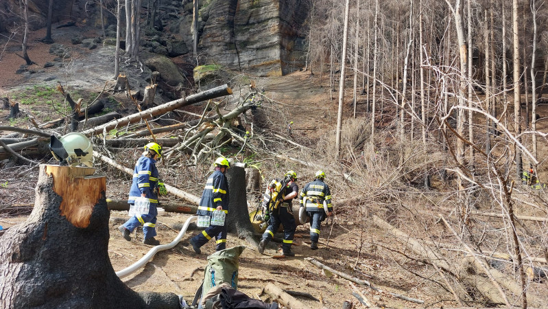 Na místě je také policie. „Prostřednictvím tísňové linky jsme přijali oznámení o požáru v lese v okolí Pravčické brány. Na místo ihned vyjeli policisté a hasiči. V tuto chvíli na místě pracujeme na součinnosti s hasičským záchranným sborem,“ řekla mluvčí děčínské policie Eliška Kubíčková. Doplnila, že další informace policisté nemohou poskytnout.