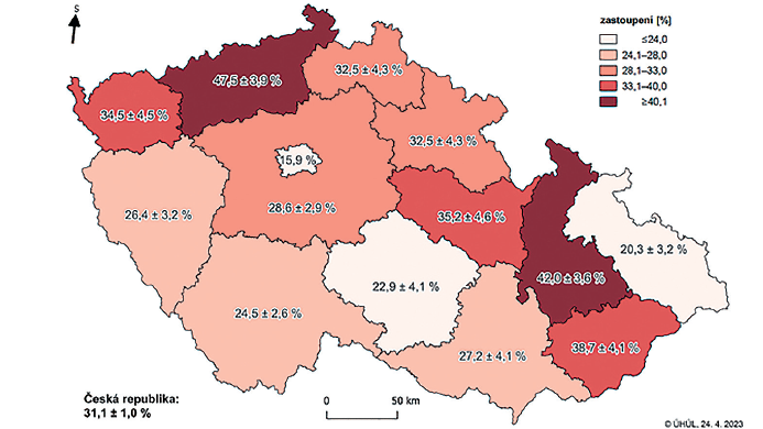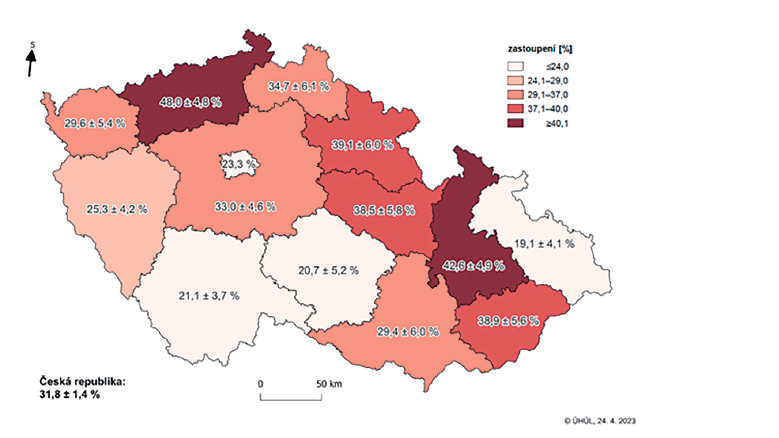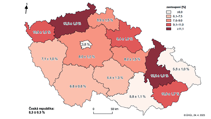 Z našeho šetření, konkrétně ze třetího cyklu Národní inventarizace lesů 2016–2020 (NIL), vyplývá, že poškození není rozhodně zanedbatelné. Celkem 8,9 ± 0,3 % všech našich lesů je poškozeno zvěří. Situace se značně liší mezi jednotlivými kraji (kartogram 1).