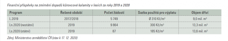 - V průběhu roku 2020 byla také diskutována možnost čerpání finančních příspěvků na zmírnění dopadů kůrovcové kalamity podnikem VLS, což se nakonec podařilo. V jaké výši budete tyto příspěvky za rok 2019 čerpat a jak tato podpora ovlivní celkové hospodaření VLS ČR?