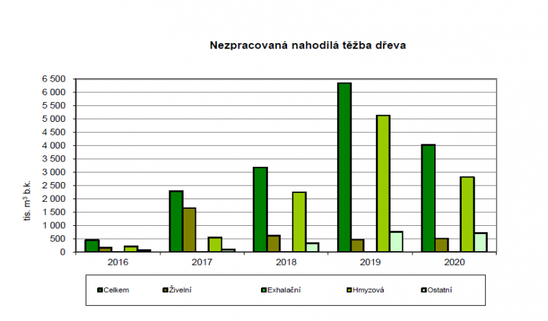 Pozitivní zprávou je pokles podílu nezpracované nahodilé těžby.