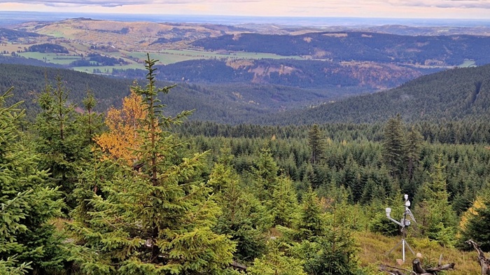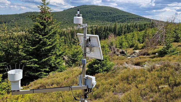 Měřicí stanice na výzkumné ploše v Jeseníkách.