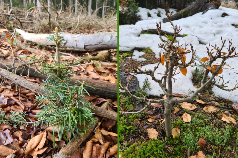 Okus jedle bělokoré (vlevo) a buku lesního (vpravo). Foto: Jan Cukor