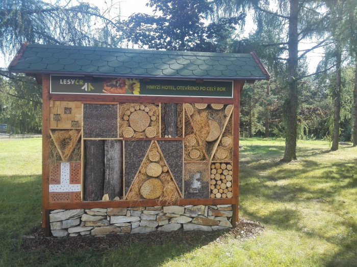 Tak zvaný hmyzí hotel instalovaly počátkem září Lesy ČR na zahradě Semenářského závodu v Týništi nad Orlicí. Z borového dřeva a dřevního odpadu ho vyrobili zaměstnanci závodu. Samičky různého hmyzu, například včely samotářky, využívají různorodé otvory ke kladení vajíček. Ve hmyzím hotelu se tak vyvíjí nová generace těchto užitečných opylovačů. „Hmyzí hotel je možné umístit kamkoli, vyrábíme ho na zakázku," uvedla ředitelka závodu Zuzana Neznajová. Informace o závodu i kontakty naleznete na www.semenarskyzavod.cz.
