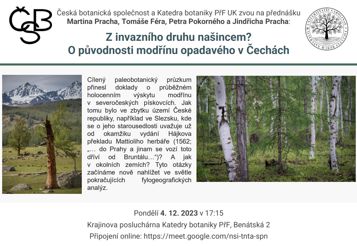 Místo: Krajinova posluchárna Katedry botaniky PřF UK, Benátská 2