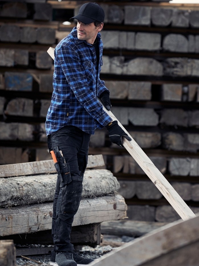 V žebříčku jsou jedničkou kalhoty – modely Allround Work, RuffWork, FlexiWork či RuffWork. V posledních letech Snickers Workwear na trh přinesl řadu oděvů ze strečových materiálů. Nejedná se jenom o elastické vsadky. Celý oděv pruží a nabízí tak nevídanou volnost pohybu. Elastické materiály dominují ve světě sportu. Bylo však těžké adaptovat elastická vlákna pro zátěž, které jsou vystavena v souvislosti s pracovním stylem řemeslníků, stavařů, pracovníků cementáren, truhlářů, tesařů, lesníků apod. To se podařilo. A zákazníci to náležitě oceňují, protože model AllroundWork Stretch se stal nejpopulárnějším po celém světě. Zachoval si všechny své inovativní vlastnosti, díky nimž si ho cenili zákazníci už před tím. Zesílení kolenních partií, kapes, rozkroku či zakončení nohavic nenasákavou Cordurou® určenou původně pro extrémní podmínky a armádní využití. Dále to je množství kapes a poutek včetně toho na metr nebo řemeslnické nože Hultafors či předtvarované nohavice a integrovaný systém na uložení kolenních chráničů KneeGuard Pro. ![]()