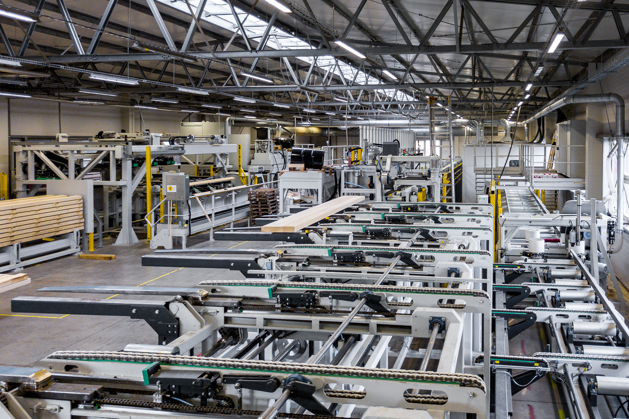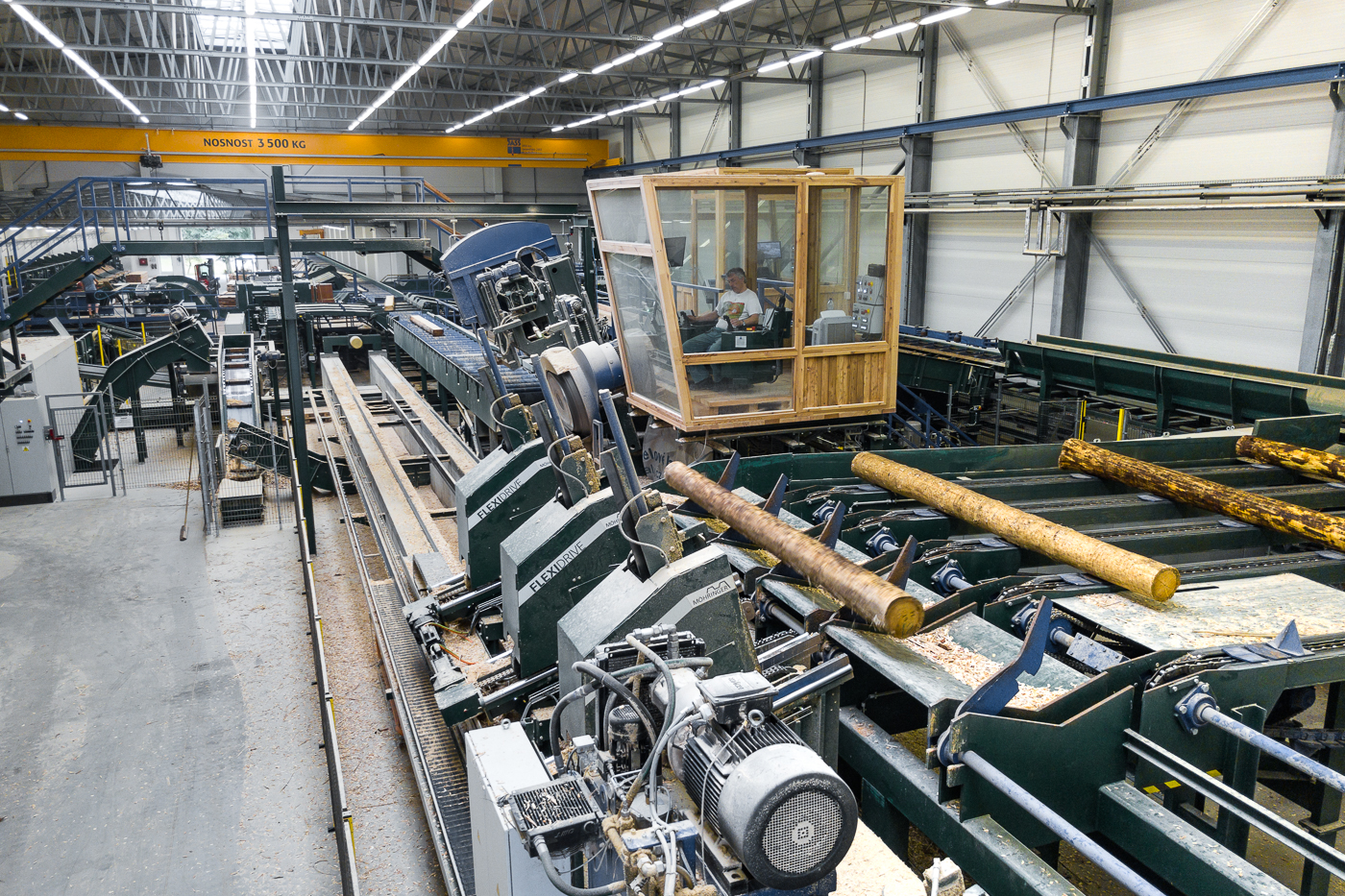 Přejímka kulatiny a následné čepové zatřídění jsou realizovány na lince Baljer-Zembrod z roku 2015. Součástí standardního vybavení je 2D měřicí rám, reduktor kořenových náběhů, kráticí pila a hledač kovu. Vysokou profesionalitu přejímky kulatiny zajišťují naši operátoři, kteří mají mnohaletou dřevařskou zkušenost z prostředí společnosti MATRIX a dalších dřevařských firem s celonárodní působností. Plocha manipulačního skladu, výrazně rozšířená v roce 2021, nám umožňuje flexibilněji reagovat na aktuální nabídkovo-poptávkovou situaci v lesnicko-dřevařském sektoru. Nová pilnice z roku 2017 je osazena technologií od německé společnosti Simon Möhringer Anlagenbau GmbH s několikagenerační rodinnou tradicí 130 let. Pořezová kapacita je dimenzována tak, abychom mohli flexibilně vyhovět i nižším poptávaným objemům pro jednotlivé zákazníky. Rozměrovou pružnost zajišťuje kombinace pásové a rámové pily s navazující dvouhřídelovou rozmítací pilou o prořezu do 260 mm. Technologicky pořezu schopná čepová škála od 12 do 100 cm a délkové rozpětí od 2,5 do 13 m nám umožňuje potencionálně vyhovět takřka jakémukoliv sortimentnímu požadavku zákazníka – od střešních latí po hranol či fošnu „neomezené" šířky. Aby bylo možno vyrobené řezivo zhodnotit v navazujícím výrobním procesu, disponujeme významnou sušicí kapacitou v podobě 13 sušicích komor od společnosti KATRES, s celkovou jednorázovou vsázkou kolem 750 m3 řeziva. Vytápění je zajištěno vlastní kotelnou.![]()
