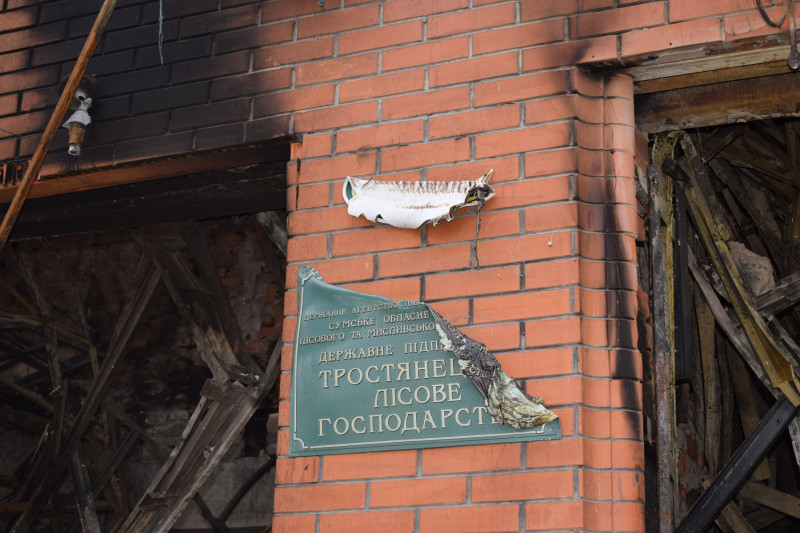 Lesnická výzkumná stanice v Trostjanci v Černihivské oblasti, která byla zničena ruskou armádou. Zdroj: forest.gov.ua