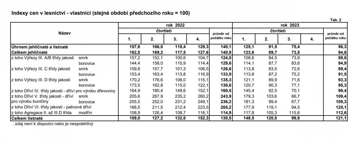 Indexy cen v lesnictví za 3. čtvrtletí 2023 najdete zde: