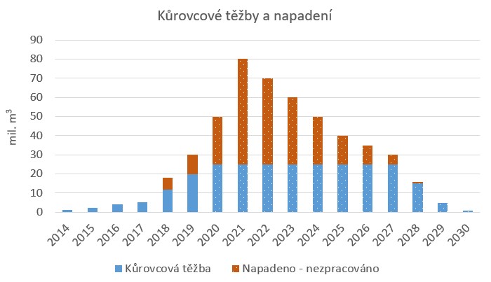 „Situace lesnicko-dřevařského sektoru a zejména vlastníků lesů je zásadním způsobem ovlivněna dopady minulých suchých let a následnou kůrovcovou kalamitou. Stav, kdy objem dříví napadeného kůrovci převyšuje celkové těžebně dopravní kapacity v ČR, byl ještě před několika lety zcela nepředstavitelný. Je zřejmé, že dopady tohoto stavu se dotknou s různou intenzitou a v různém časovém horizontu téměř všech součástí lesnicko-dřevařského sektoru," uvádí prognóza.