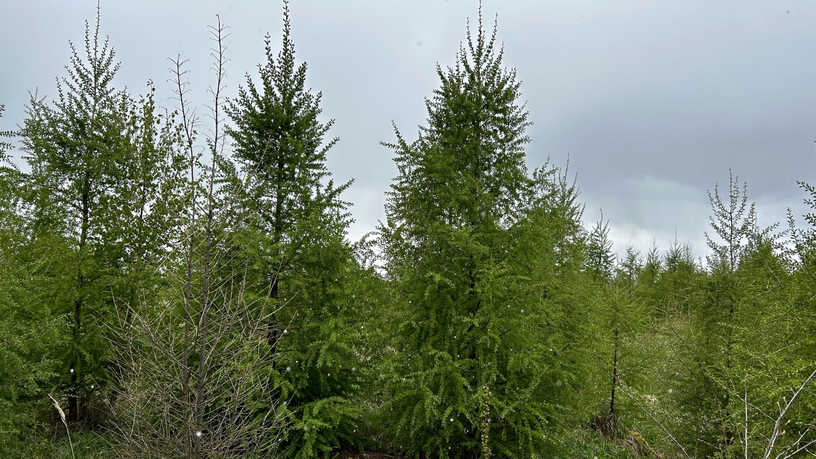 Přípravný porost modřínu opadavého na kalamitní holině na severní Moravě (výzkumná plocha Huzová). Foto: J. Černý