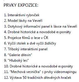 Další prvky expozice jsou k vidění v přiloženém plánu.