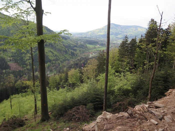 Biskupské lesy, LS Ostravice, Pohled na vrchol Ondřejník.
