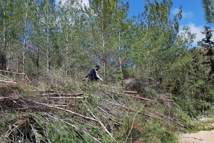 Od roku 2013 už čtvrtý rok pracujeme na polesí Karmel Alonim, poblíž vesničky Kerem Maharal (tu mimochodem založili čeští židé). Jeden rok jsme dělali probírku ve svažitém porostu, druhý rok prořezávku na náhorní plošině a poslední dva roky provádíme protipožární opatření kolem národní turistické cesty.