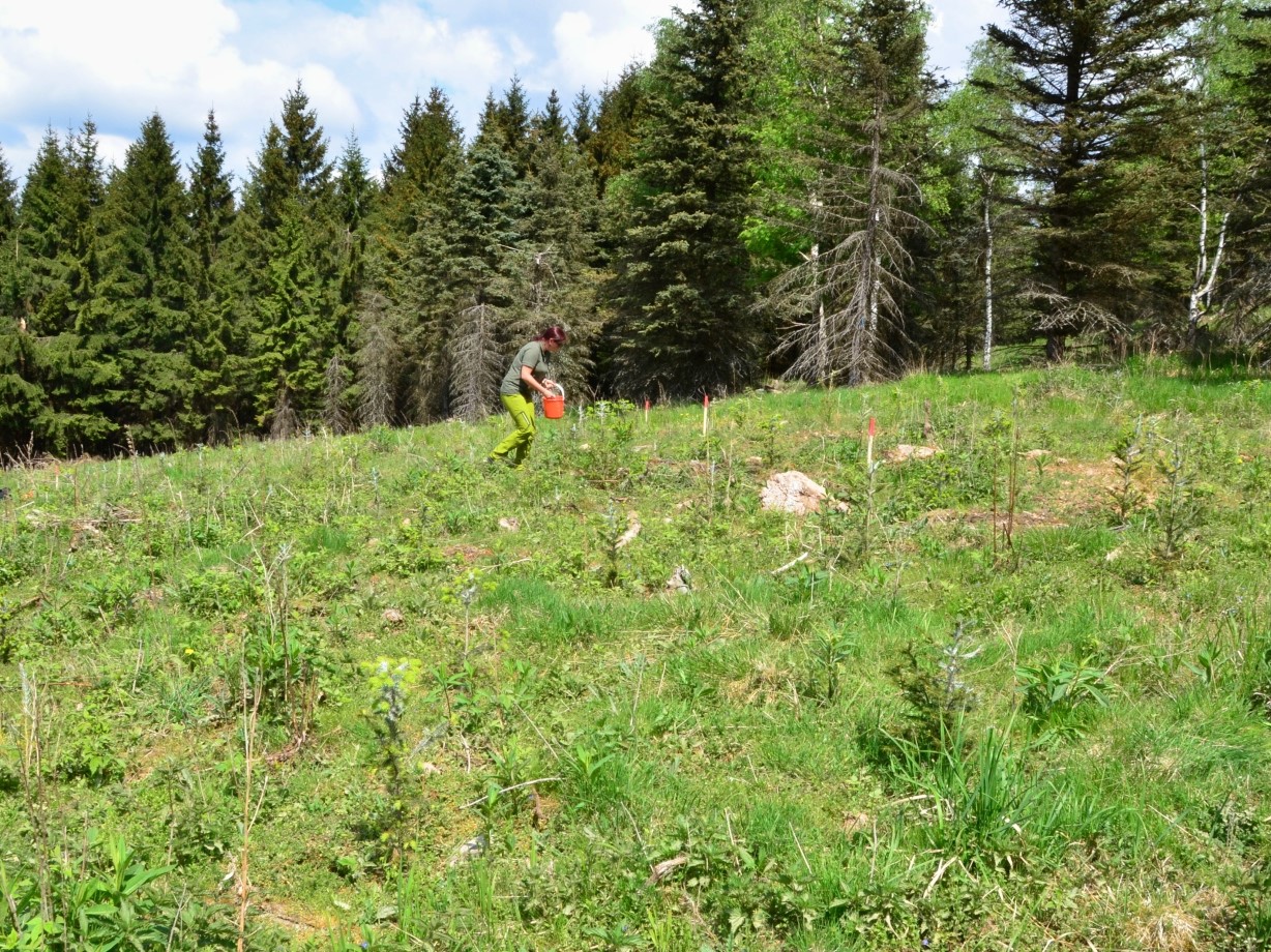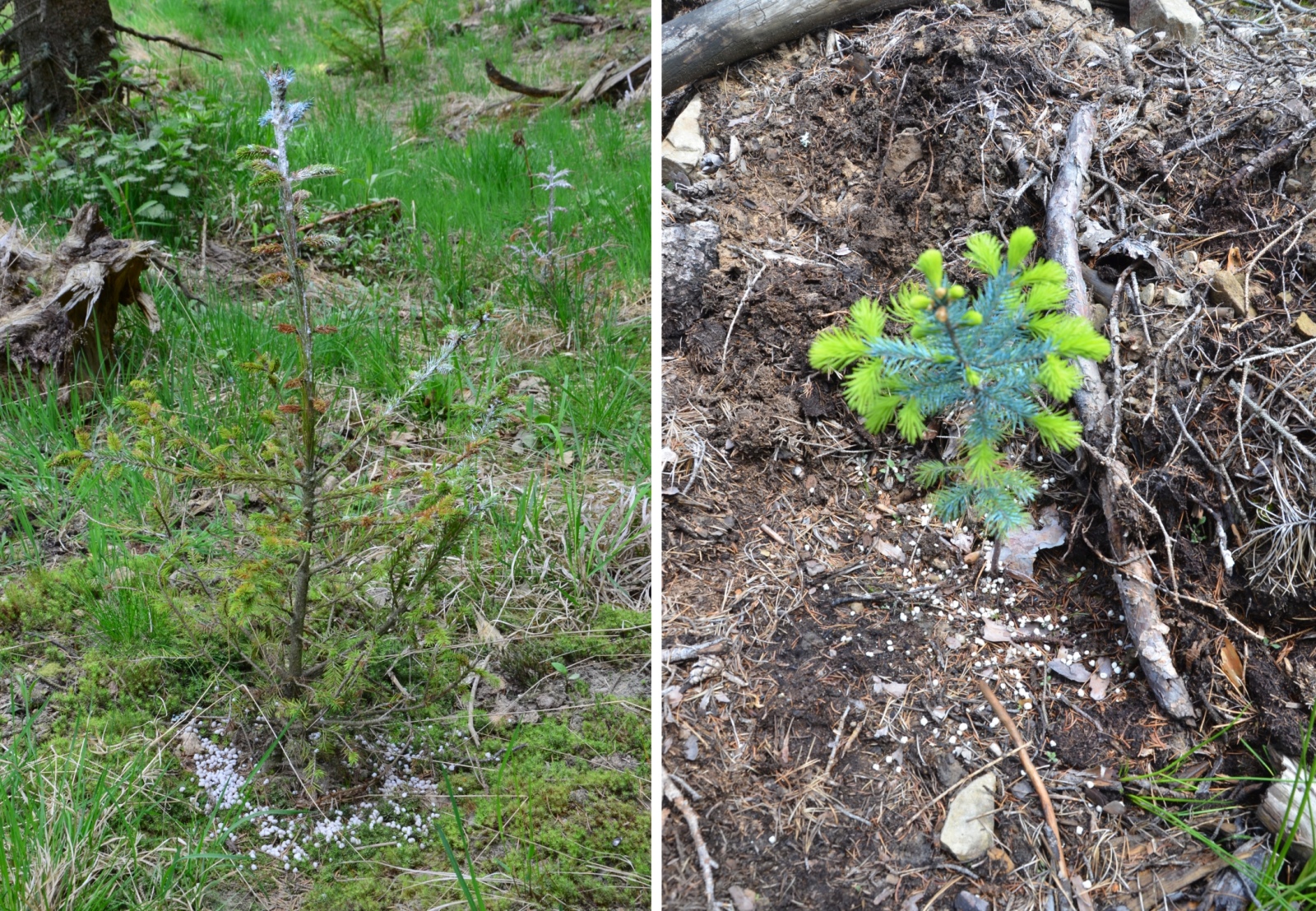 Aplikace hnojiva na pokusné ploše se smrkem, archiv VÚLHM