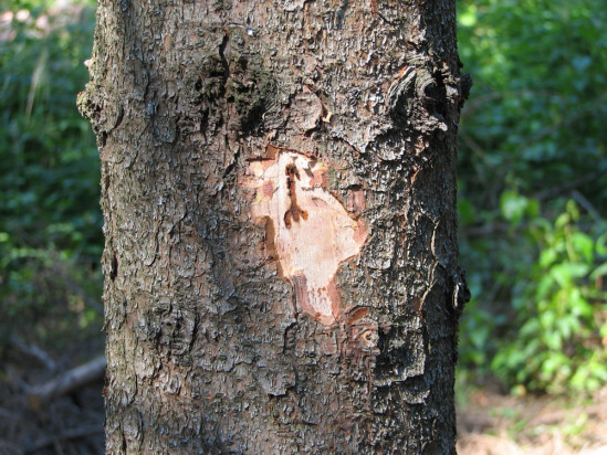 Drtinky za šupinami kůry.