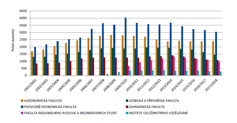Celkový počet studentů MENDELU dle fakult v letech![]()