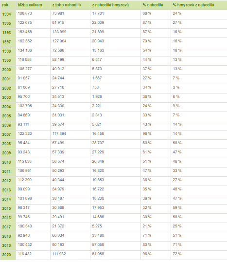Přehled těžby dřeva v Krkonošském národním parku v metrech krychlových:![]()