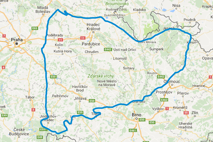 Obr.1: Trasa rekognoskačního letu ze dne 22. 8. 2018.