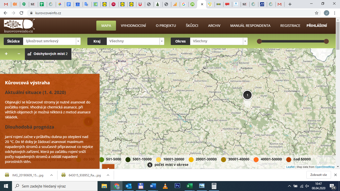 Zhruba polovina našich smrkových lesů se nachází v důsledku sucha a následné extrémní kůrovcové kalamity již téměř ve stadiu rozpadu. Na zbytku území však ještě není boj s lýkožroutem smrkovým prohrán, naopak je třeba s ním intenzivně bojovat a informace o průběhu rojení mohou být důležitým vodítkem k tomu, jak načasovat jednotlivá obranná opatření. Základní návod pro obranná opatření v podobě „KŮROVCOVÉ VÝSTRAHY" je součástí hlavní strany projektu KŮROVCOVÉ INFO (oranžové okno) a i v letošním roce bude odborníky na ochranu lesa průběžně aktualizován.