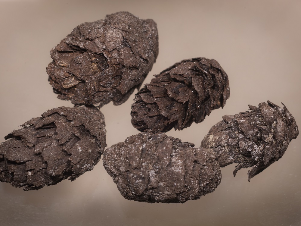Obr. 4: Unikátní nález šišek modřínu datovaných do poslední ledové doby z lokality Šafárka ve Spišské kotlině pod Tatrami. Nález Vlasty Jankovské, foto: P. Pokorný