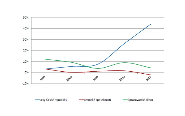 Lesy ČR z dominantní pozice na trhu dřeva a lesnických služeb u sebe podle profesních svazů koncentrují výnosy z celého lesnicko-dřevařského sektoru na úkor soukromých subjektů. Poškozovány jsou nejen lesnické, ale i dřevozpracující firmy. To lze dokumentovat na vývoji tržeb a výsledku hospodaření za období 2007–2011.