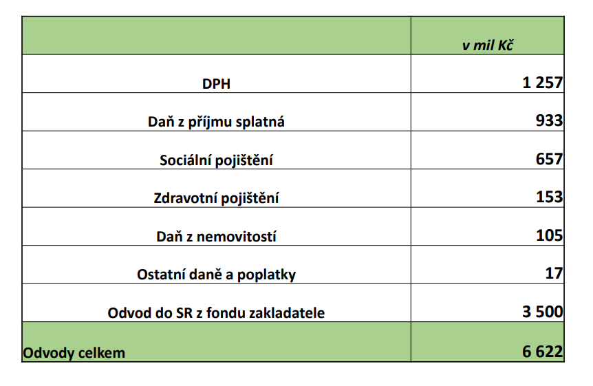 Celkové odvody do veřejných financí za rok 2023 přesáhly 6,6 miliardy korun.