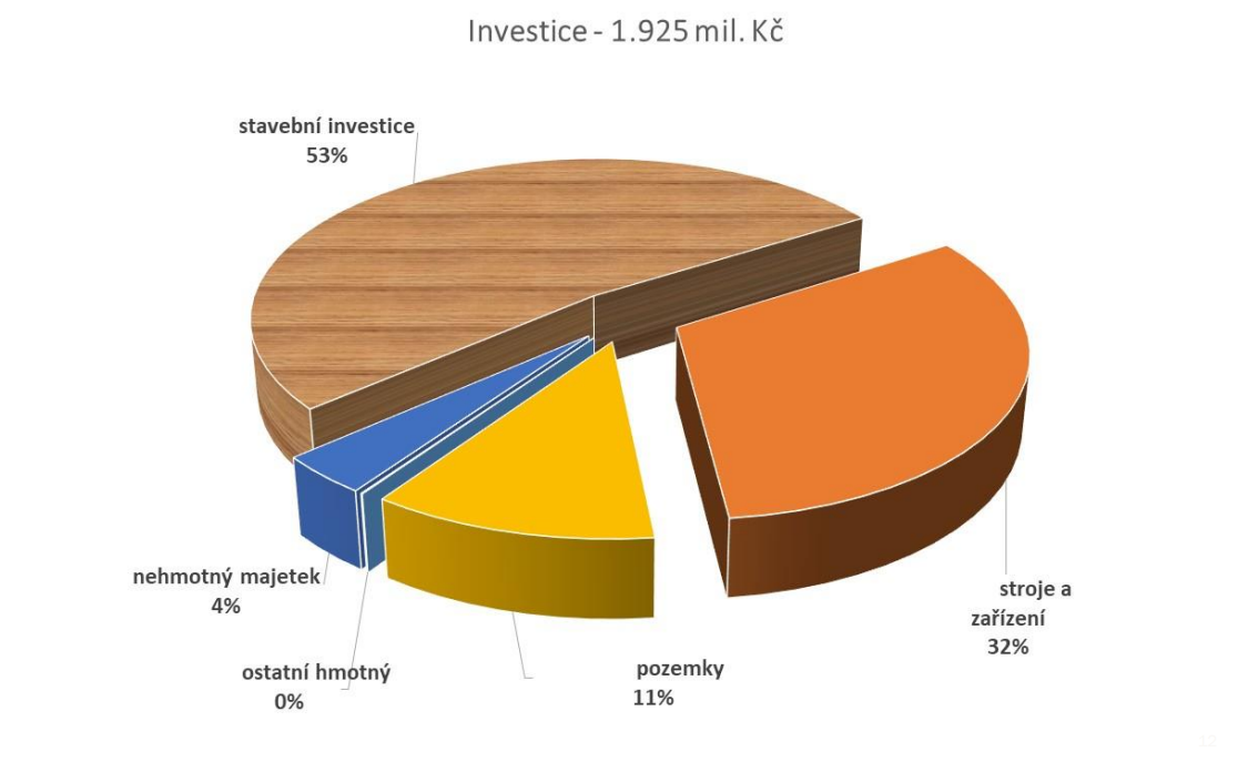 V letošním roce jsou naplánovány investice ve výši 2,64 miliard korun, přičemž proběhne strukturální změna. Nebude se jednat již o investice do movitého majetku – do strojů a zařízení, kde je investiční plán naplněn, ale budou to investice do nemovitého majetku, především lesní cestní sítě a lesních pozemků v rámci arondace.