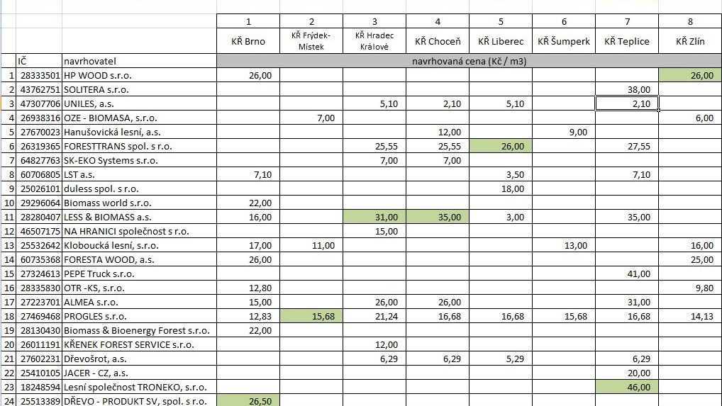 Dne 20. 10. 2011 od 10 hodin v sídle LČR proběhlo veřejné otevírání obálek s návrhy podanými v obchodní veřejné soutěži o nejvhodnější návrh na uzavření rámcové kupní smlouvy o prodeji těžebních zbytků.