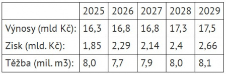 Plánované základní ekonomické ukazatele Lesů ČR pro roky 2025 až 2029. Zdroj: Koncepce strategického rozvoje podniku Lesy České republiky na období od 1. 1. 2025 do 31. 12. 2029