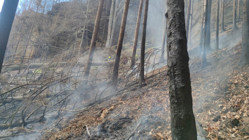 Na místě je také policie. „Prostřednictvím tísňové linky jsme přijali oznámení o požáru v lese v okolí Pravčické brány. Na místo ihned vyjeli policisté a hasiči. V tuto chvíli na místě pracujeme na součinnosti s hasičským záchranným sborem,“ řekla mluvčí děčínské policie Eliška Kubíčková. Doplnila, že další informace policisté nemohou poskytnout.