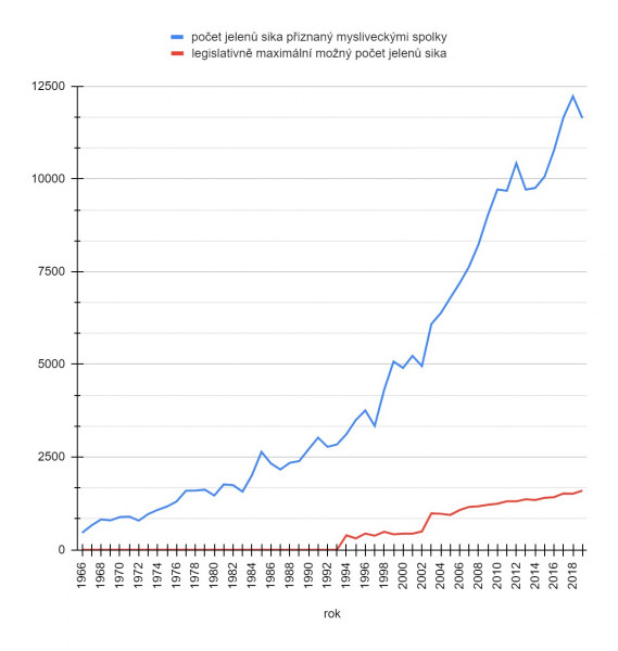 Lesníci, ekologové i vlastníci lesů a zemědělských pozemků dlouhodobě upozorňují, že dochází k porušování zákona o myslivosti, který v praxi nefunguje. Početní stavy jelenů sika za posledních dvacet let vzrostly v rozporu se zákonem o myslivosti nejméně na dvojnásobek za nečinného přihlížení Ministerstva zemědělství a jím řízené státní správy.![]()