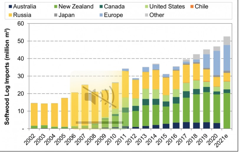 Vývoj dovozu jehličnaté kulatiny do Číny
