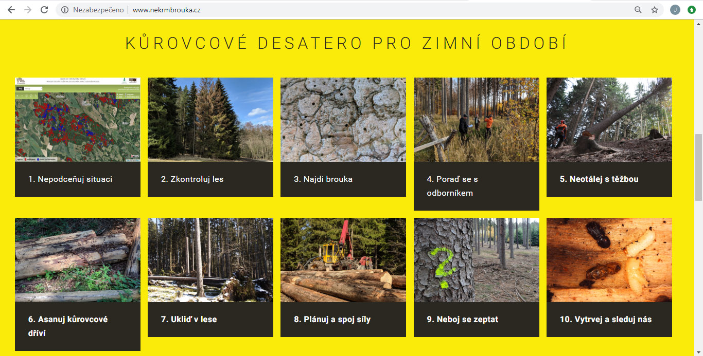 Pro srozumitelnost je NEKRMBROUKA.CZ připraven ve dvou verzích – letní a zimní. Aktuálně je spuštěna zimní verze (mimo letovou aktivitu kůrovce), a na počátku rojení bude v co možná nejkratší době natočen videonávod pro letní období (letová aktivita kůrovce) a spuštěna letní verze portálu.
