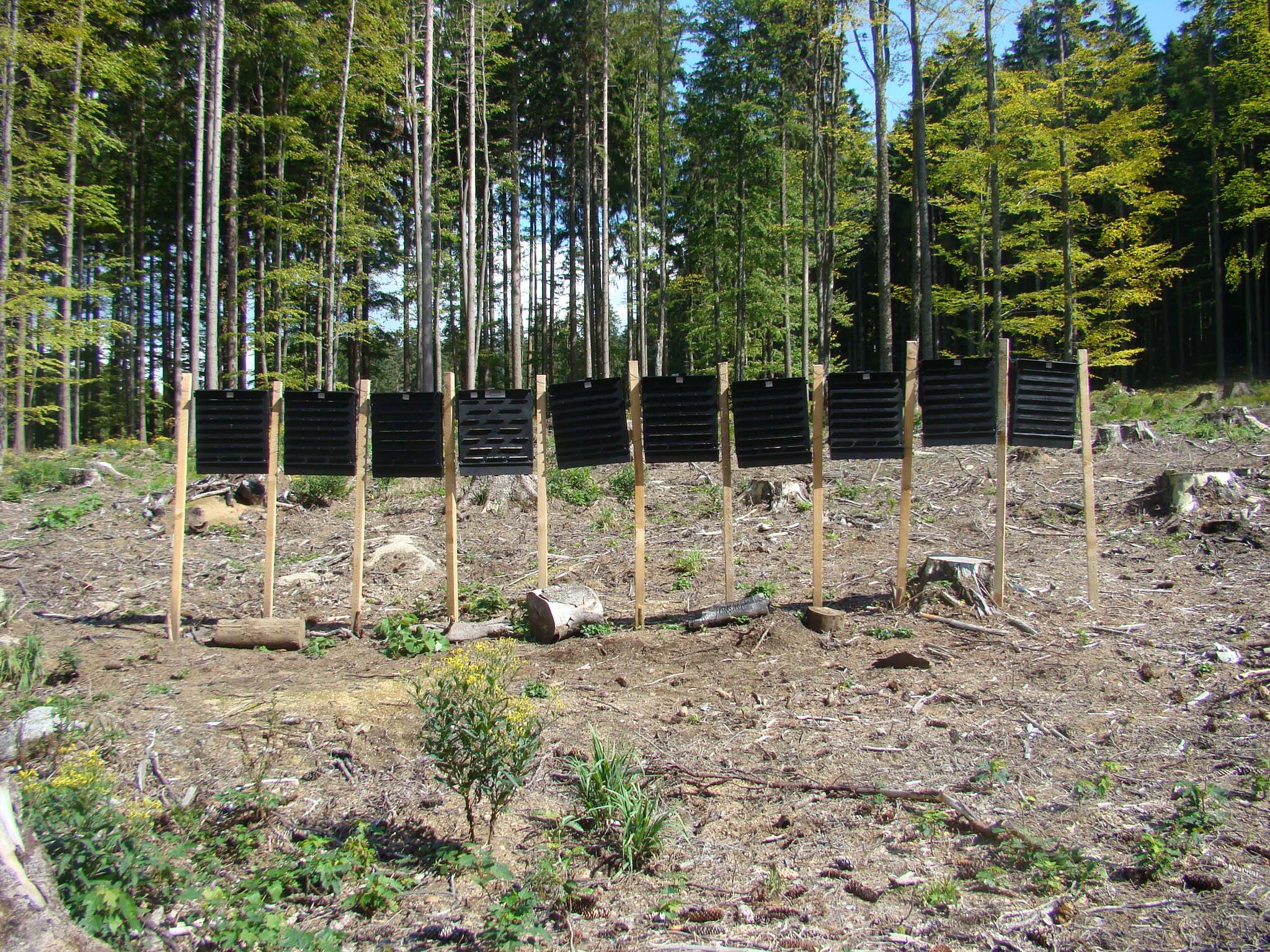 Titulní foto: Standardní uspořádání feromonových lapačů.