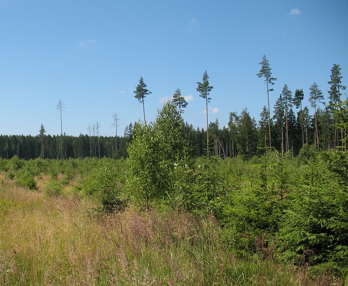 Zalesnění po Kyrillovi (Nové Hrady, rok 2014)