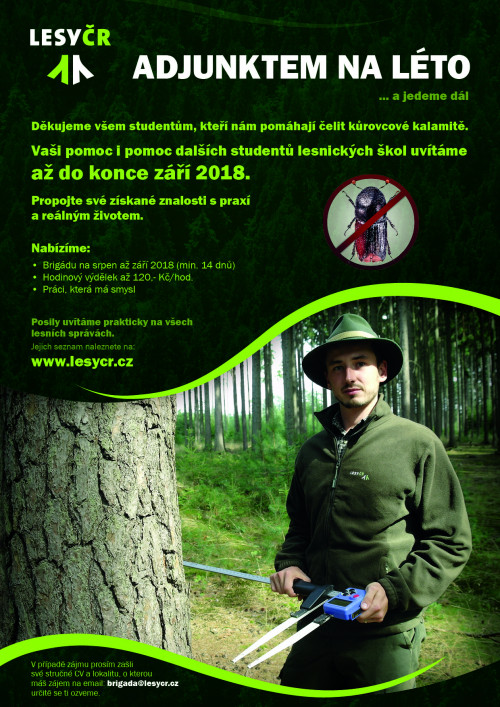 Mladí adjunkti působí zejména na severní a jižní Moravě, ale také na Vysočině a v jižních Čechách. Zájem o ně dnes mají všechny lesní správy v zemi. „Letní adjunkti pracují na revírech se zvýšeným množstvím kůrovcem napadených stromů. Za pomoc jim děkujeme a vyzýváme další, aby si vyzkoušeli znalosti v praxi, získali zkušenosti i přivýdělek," řekla Šárka Matějíčková, vedoucí personálního odboru Lesů ČR.